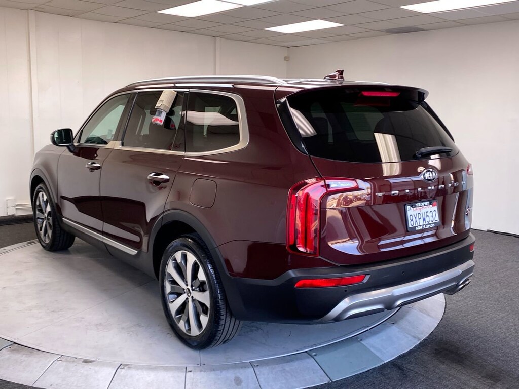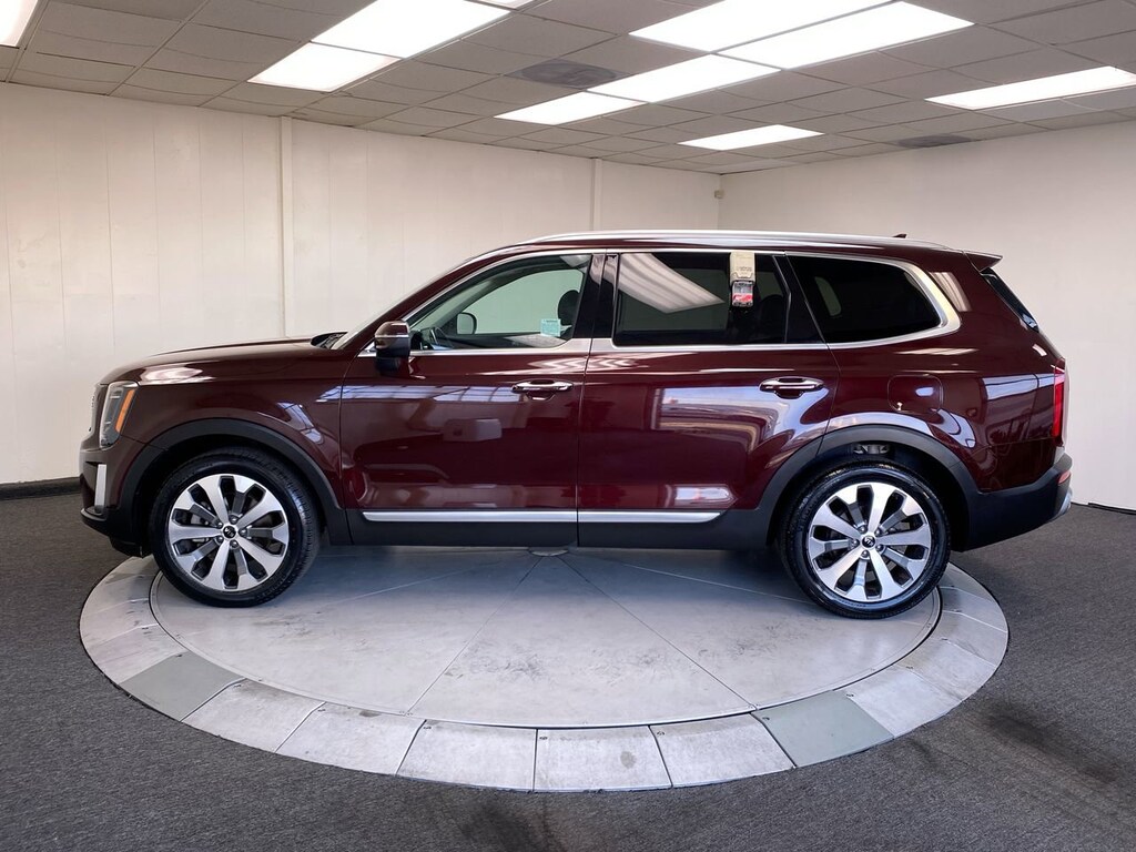 SANGRIA, CARPETED FLOOR MATS, CARGO NET, BLACK, SOFINO LEATHERTTE SEAT TRIM, Wireless Phone Connectivity, Wheels: 7.5" x 20" Machined Finish Alloy, Vehicle Stability Management (VSM) Electronic Stability Control (ESC), Variable Intermittent Wipers, Trip Computer, Transmission: 8-Speed Automatic -inc: idle stop and go (ISG) and drive mode select (comfort/ECO/smart). This Kia Telluride has a dependable Regular Unleaded V-6 3.8 L/231 engine powering this Automatic transmission.
